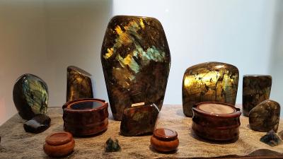 Découvrez également les lampes en Sélénite, bloc de Labradorite, druse d’Améthyste, pierres brutes, pierres roulées, pendules, objets en agate, des bijoux….